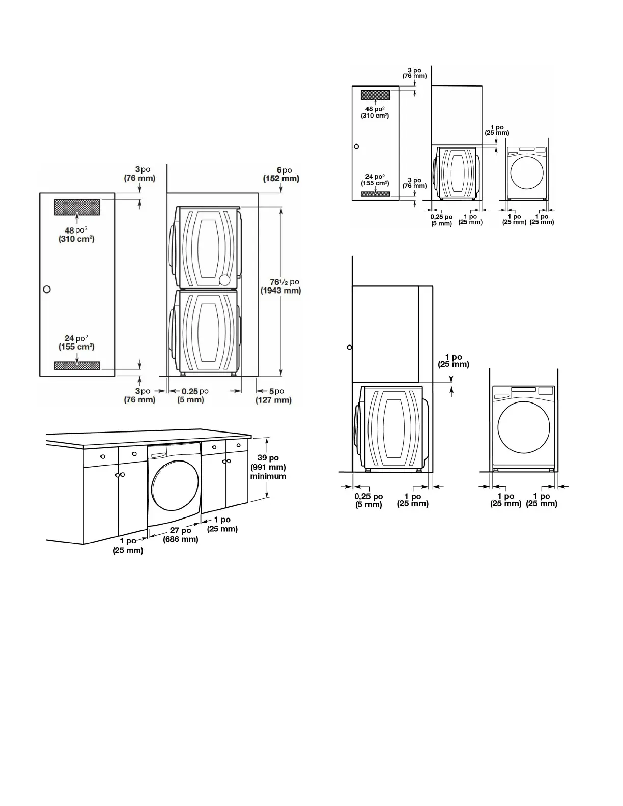 (25 mm) de tous les côtés de la laveuse pour réduire le transfert