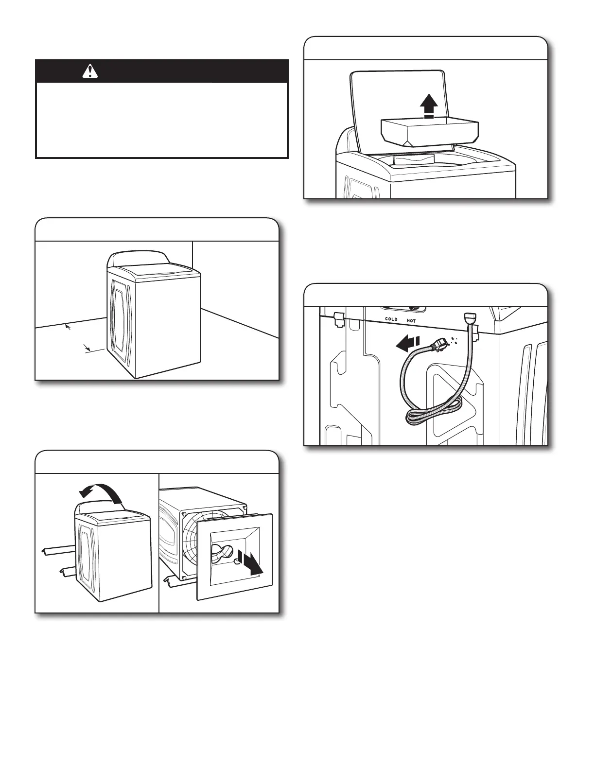 Mueva la lavadora a 4pies (1,2m) de su ubicación nal; debe
