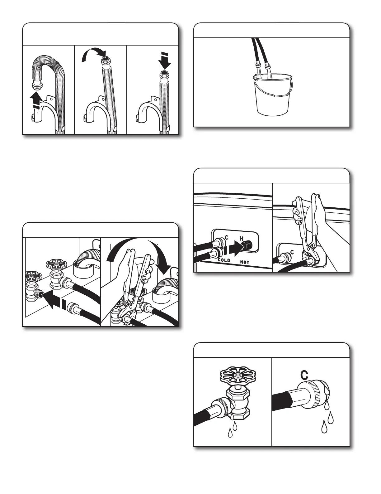 drainpipe, or bucket to avoid clogs. Water should run until clear.