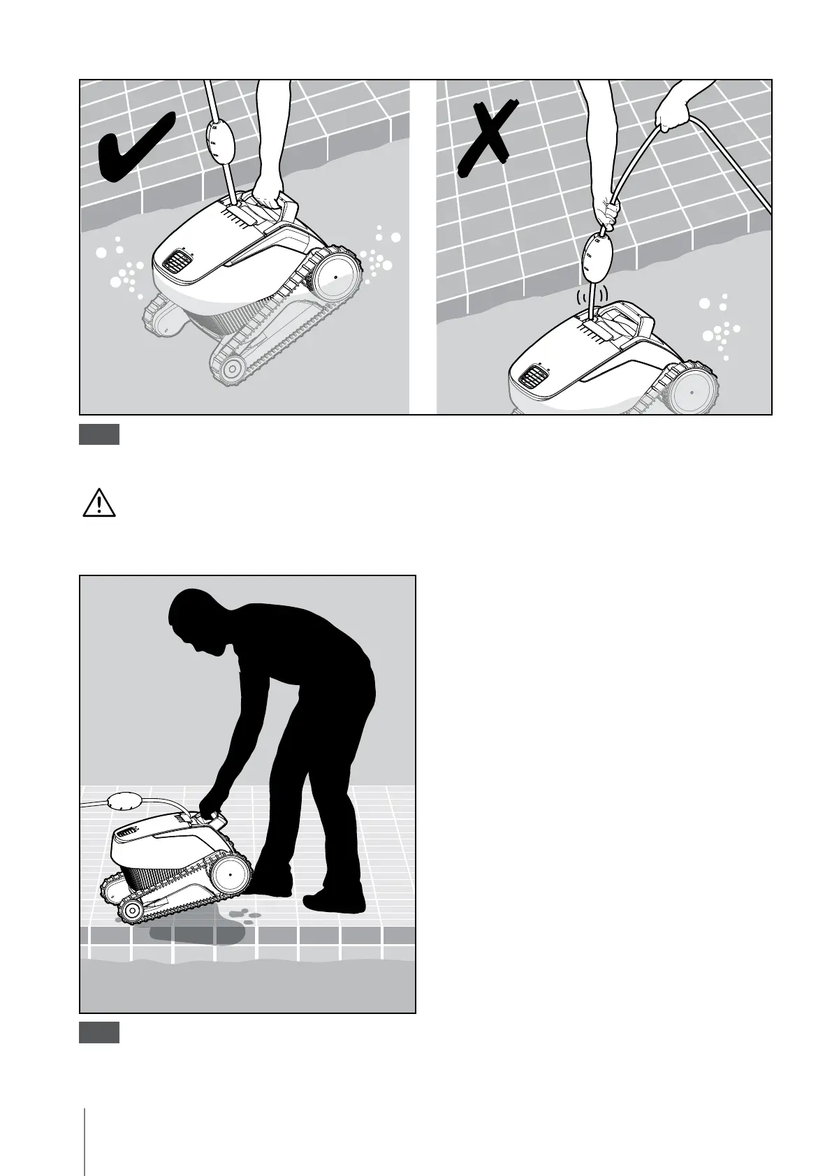 TREK NOOIT AAN DE KABEL VOOR HET VERWIJDEREN VAN DE ZWEMBADREINIGER