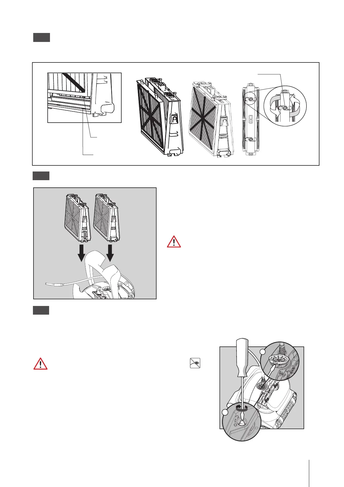 Monteer opnieuw de filterelementen: Door het plaatsen van de uitsteeksels onderin het filter