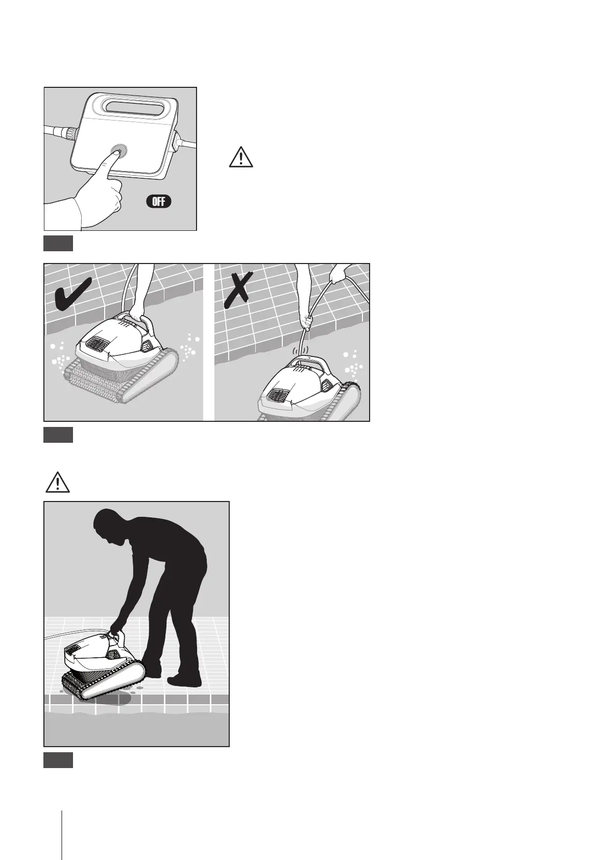 DO NOT PULL THE POOL CLEANER FROM THE POOL USING THE CABLE.
