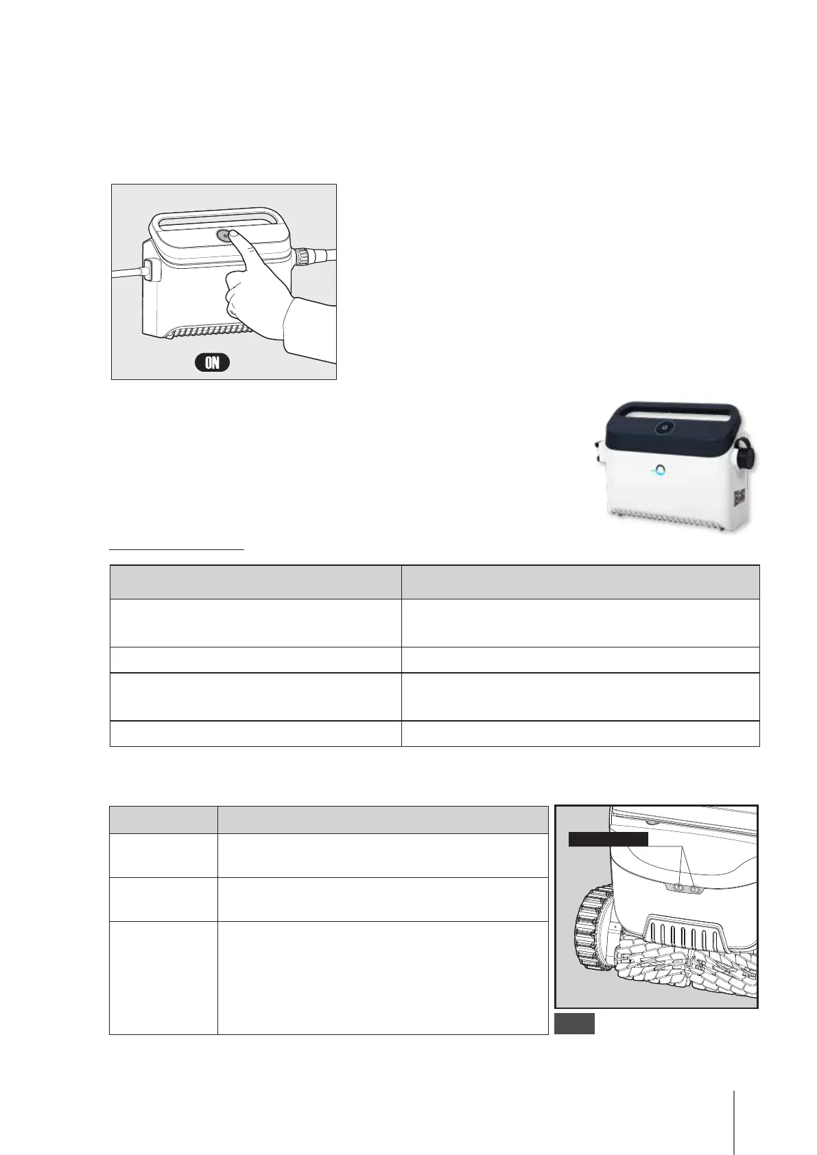 Druk op de AAN/UIT knop om de Robot zwembadreiniger in te schakelen.