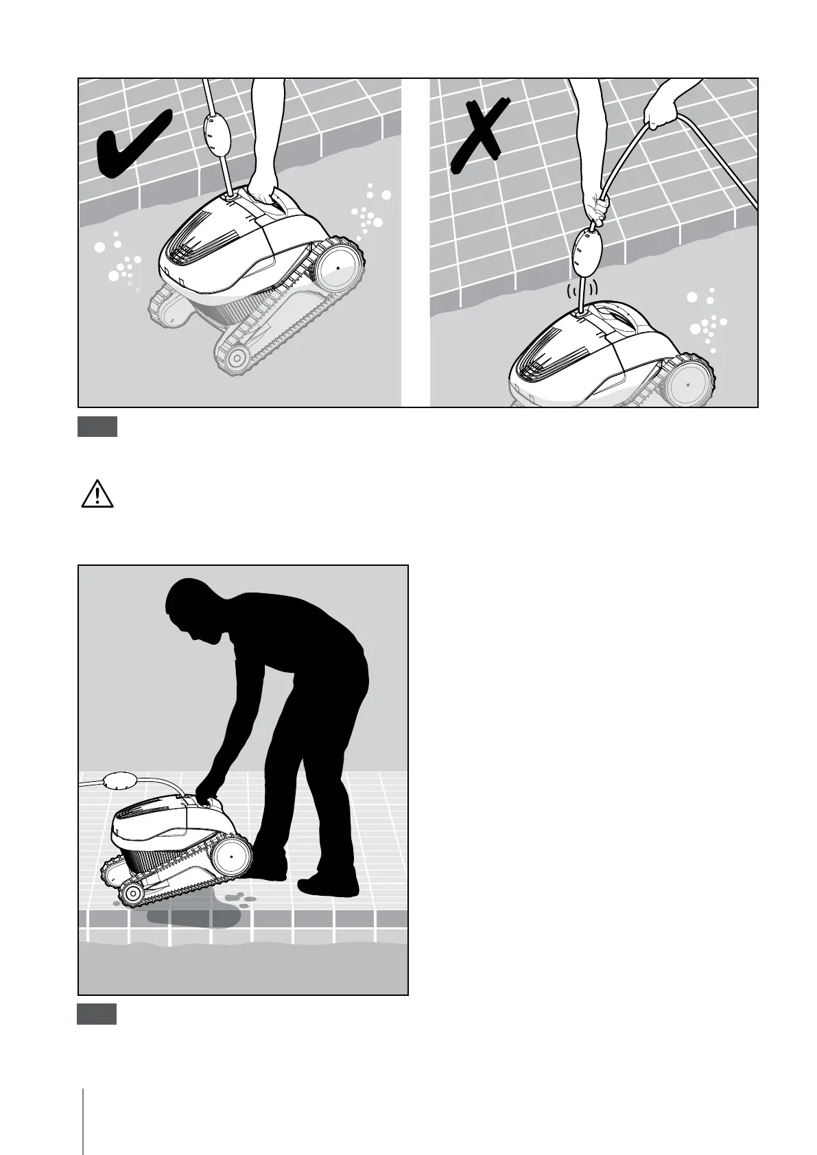 TREK NOOIT AAN DE KABEL VOOR HET VERWIJDEREN VAN DE ZWEMBADREINIGER