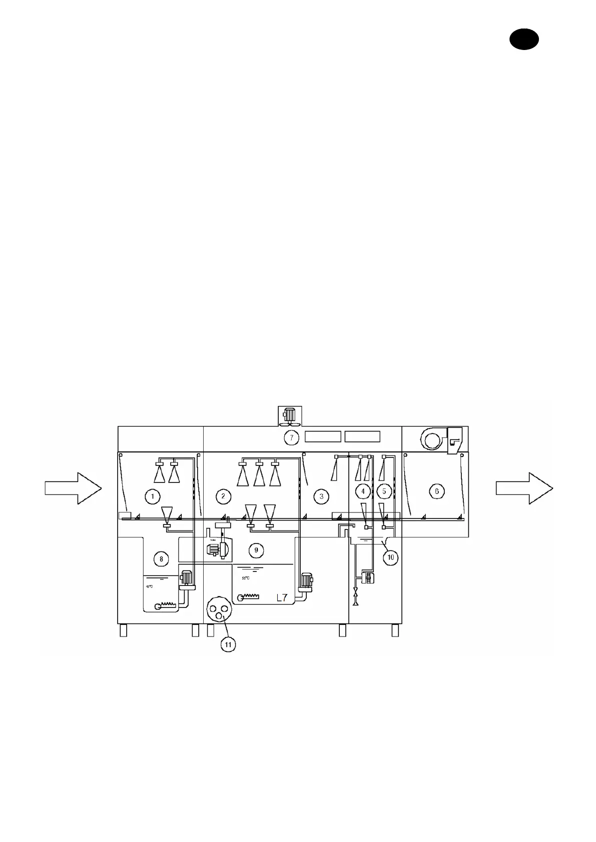 1 Vorspülkammer 5 Letzte Nachspülkammer 9 Spültank