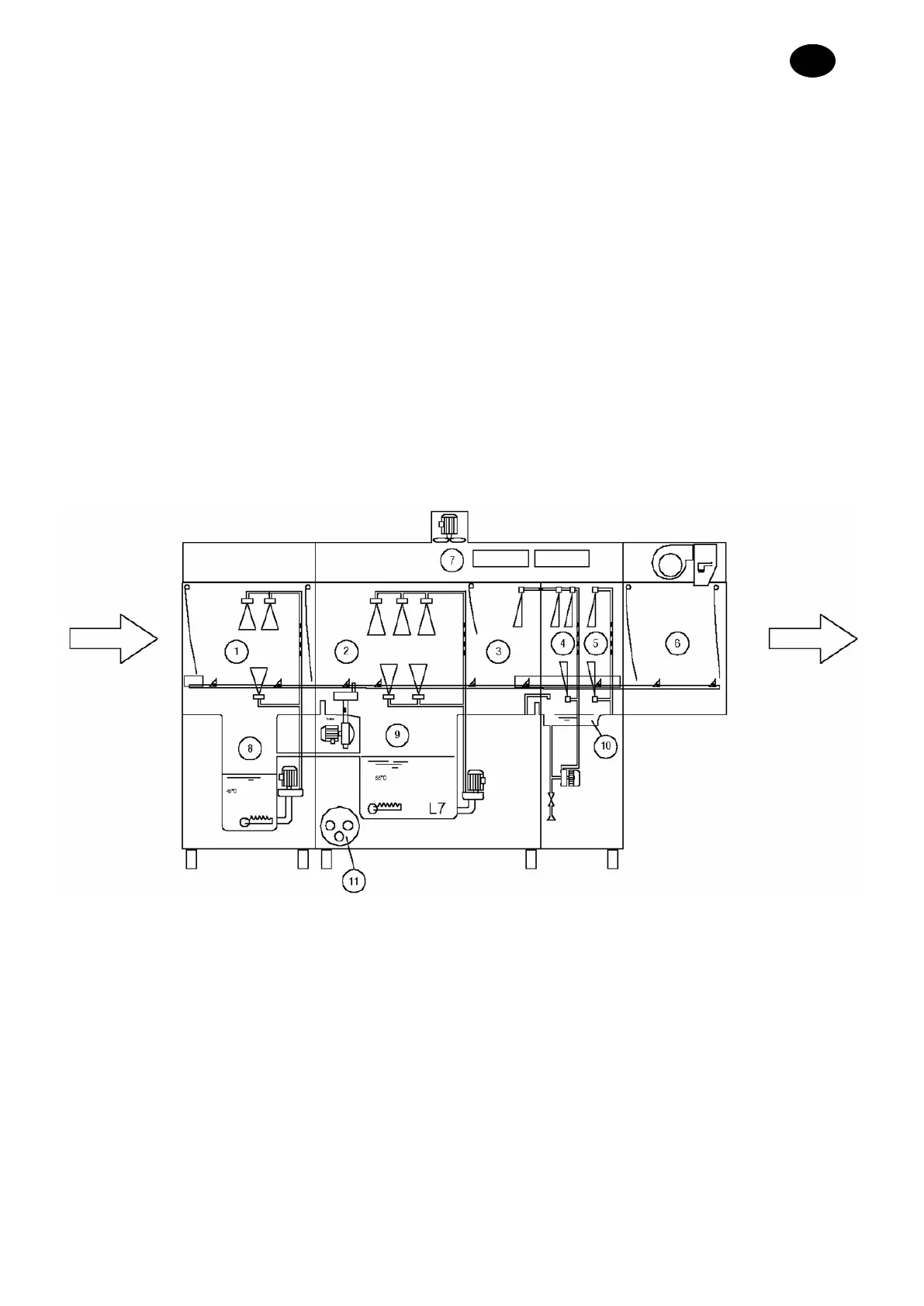 • In section 1 (pre-wash), the dishes are submitted to an initial removal of dirt.