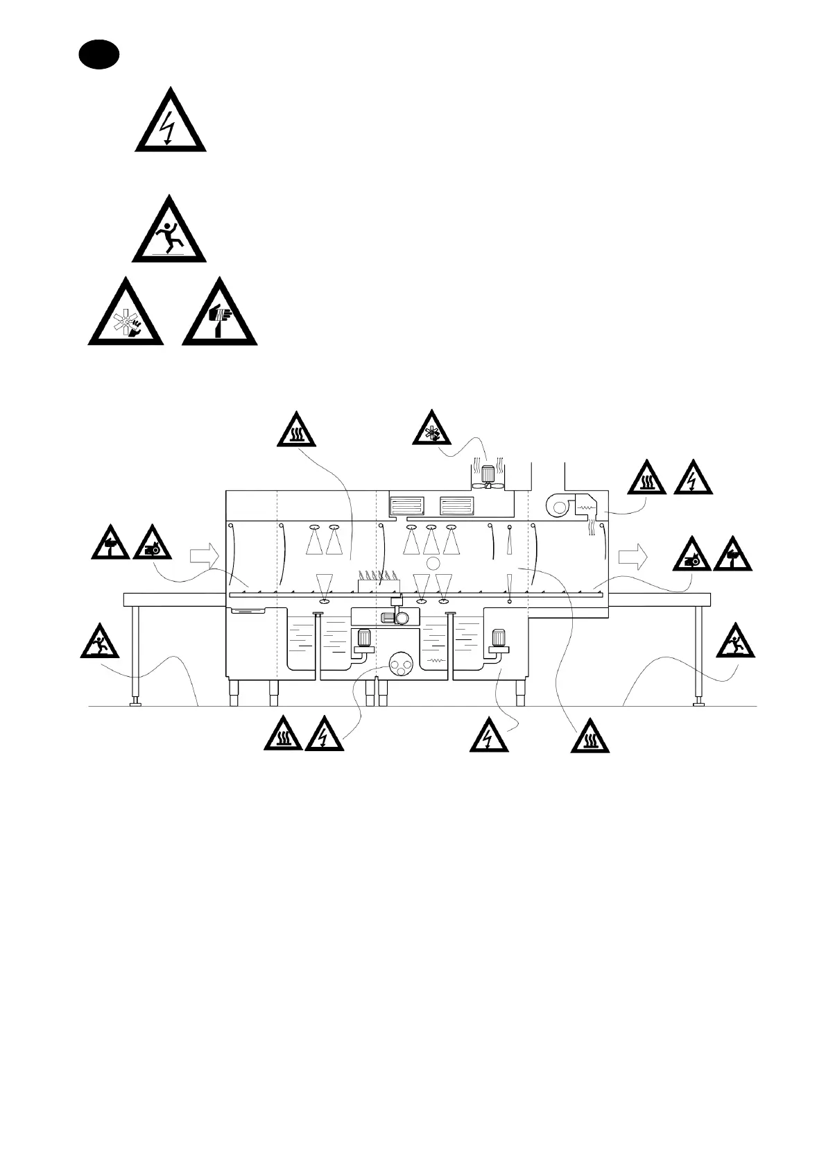 The machine is equipped with casings that limit access to the interior and to moving parts; these are
