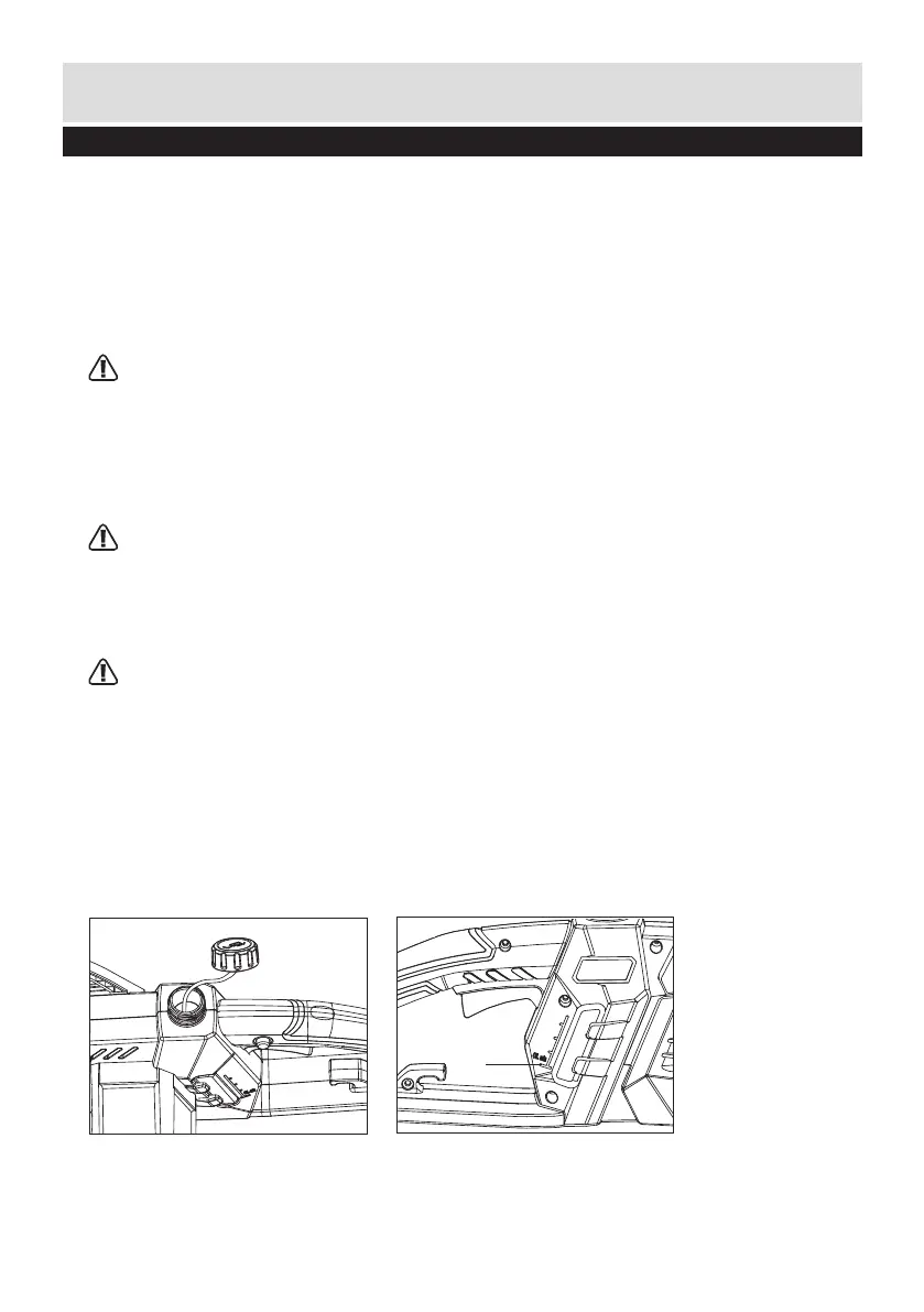 c. Fill the oil tank with 200ml of specialist chain oil (not supplied, available to purchase separately) and keep oil