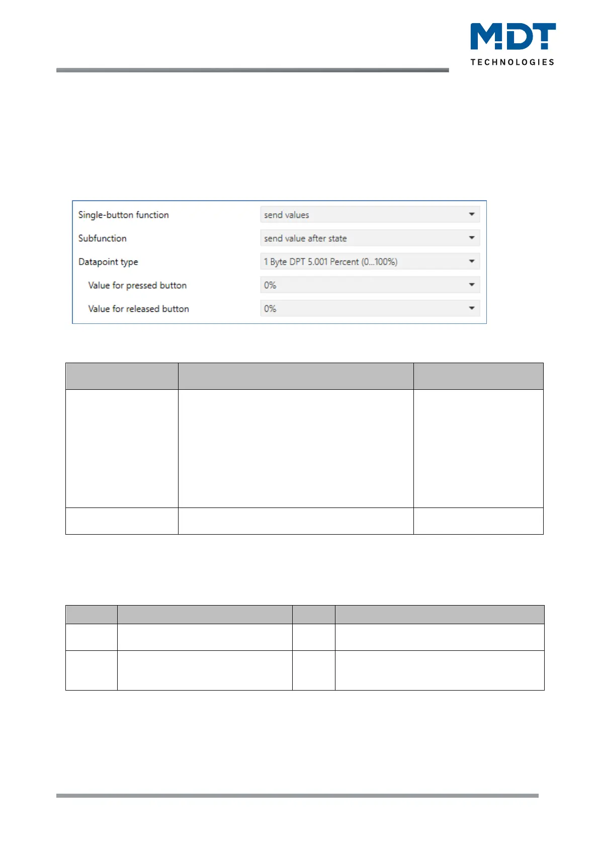 Table 37: Settings – Send values - Subfunction: Send value by state