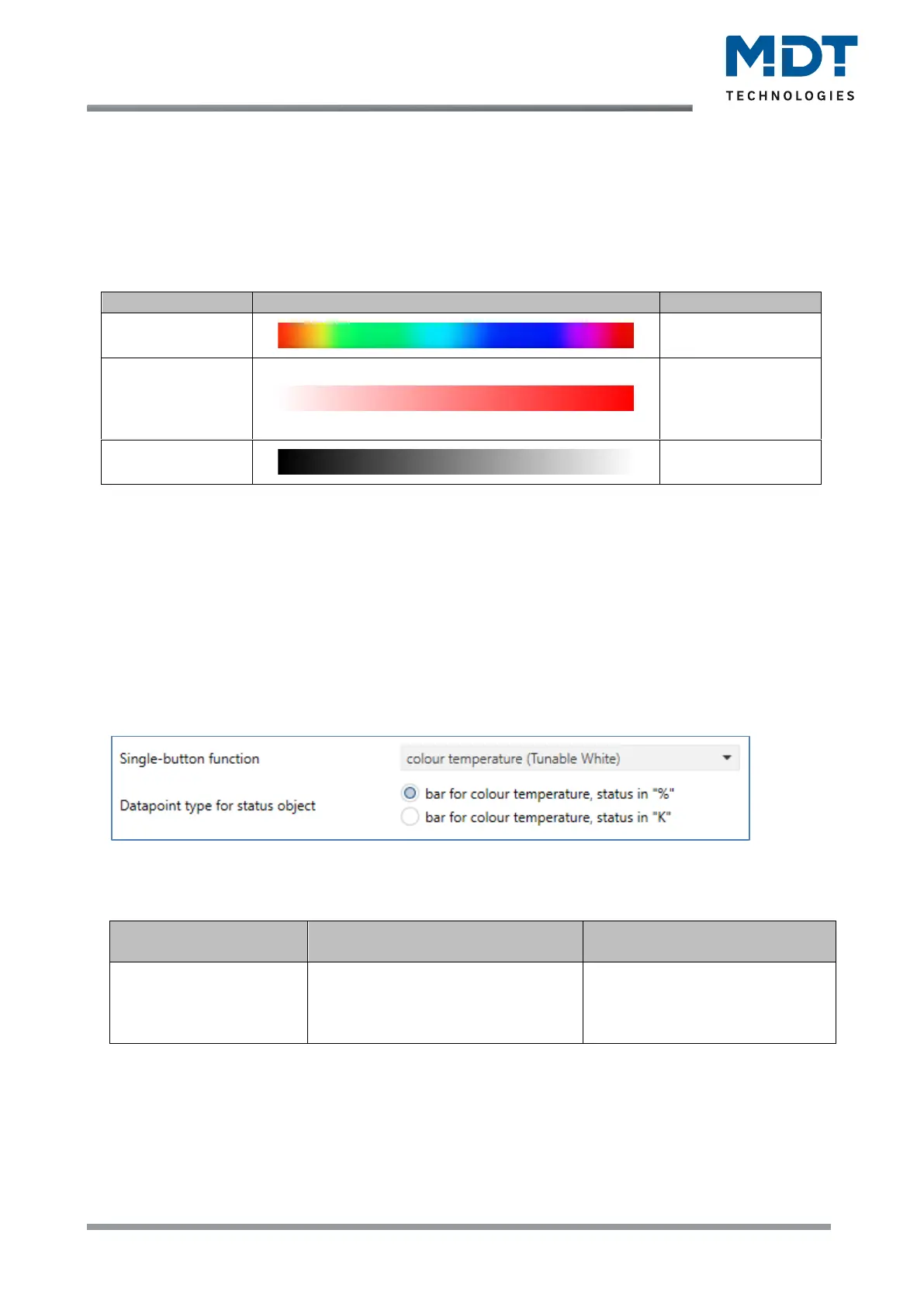 With the “Tunable White” function the colour temperature can be controlled in compatible KNX