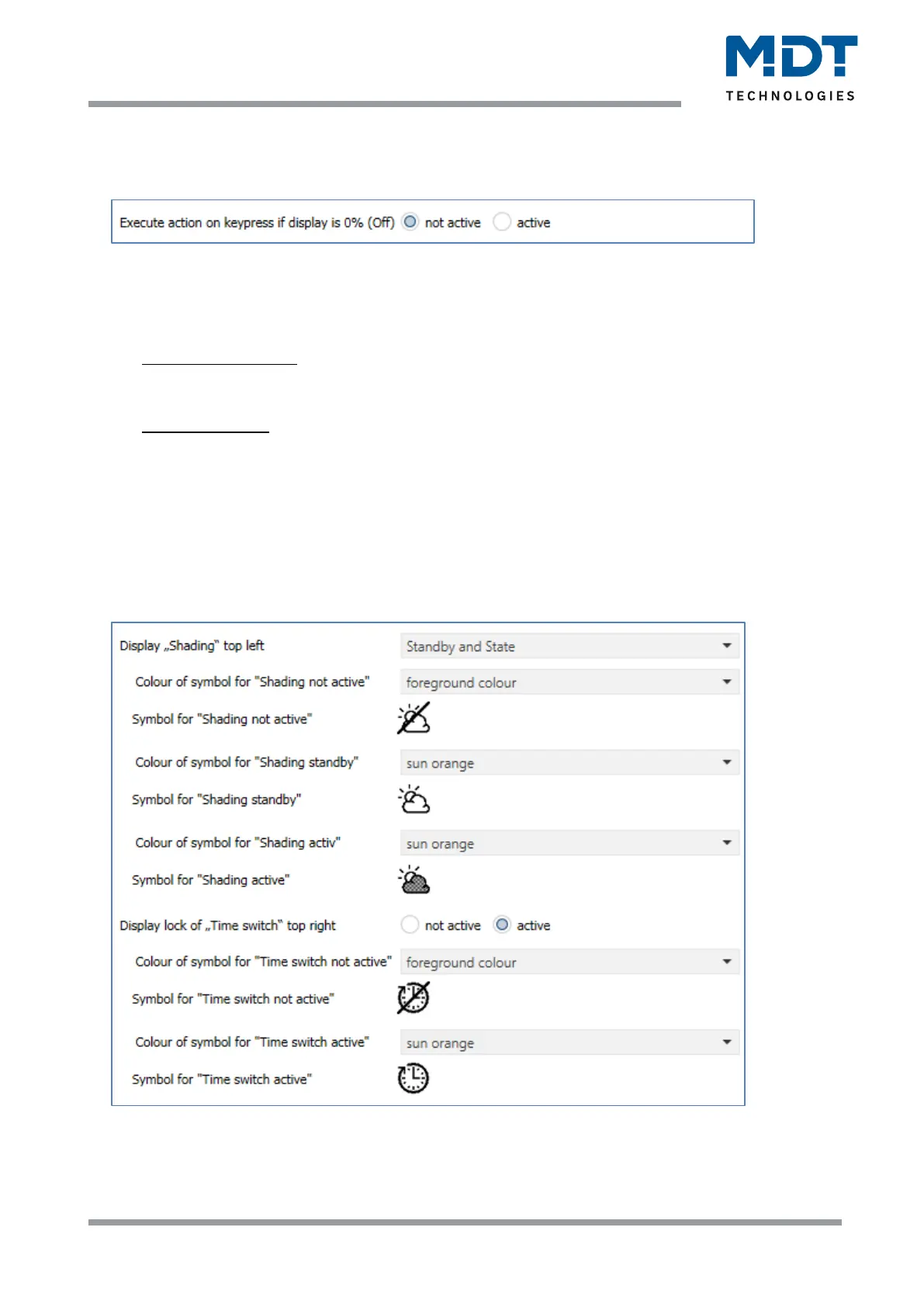 Figure 8: Setting – Execute action on keypress if display is 0% (Off)