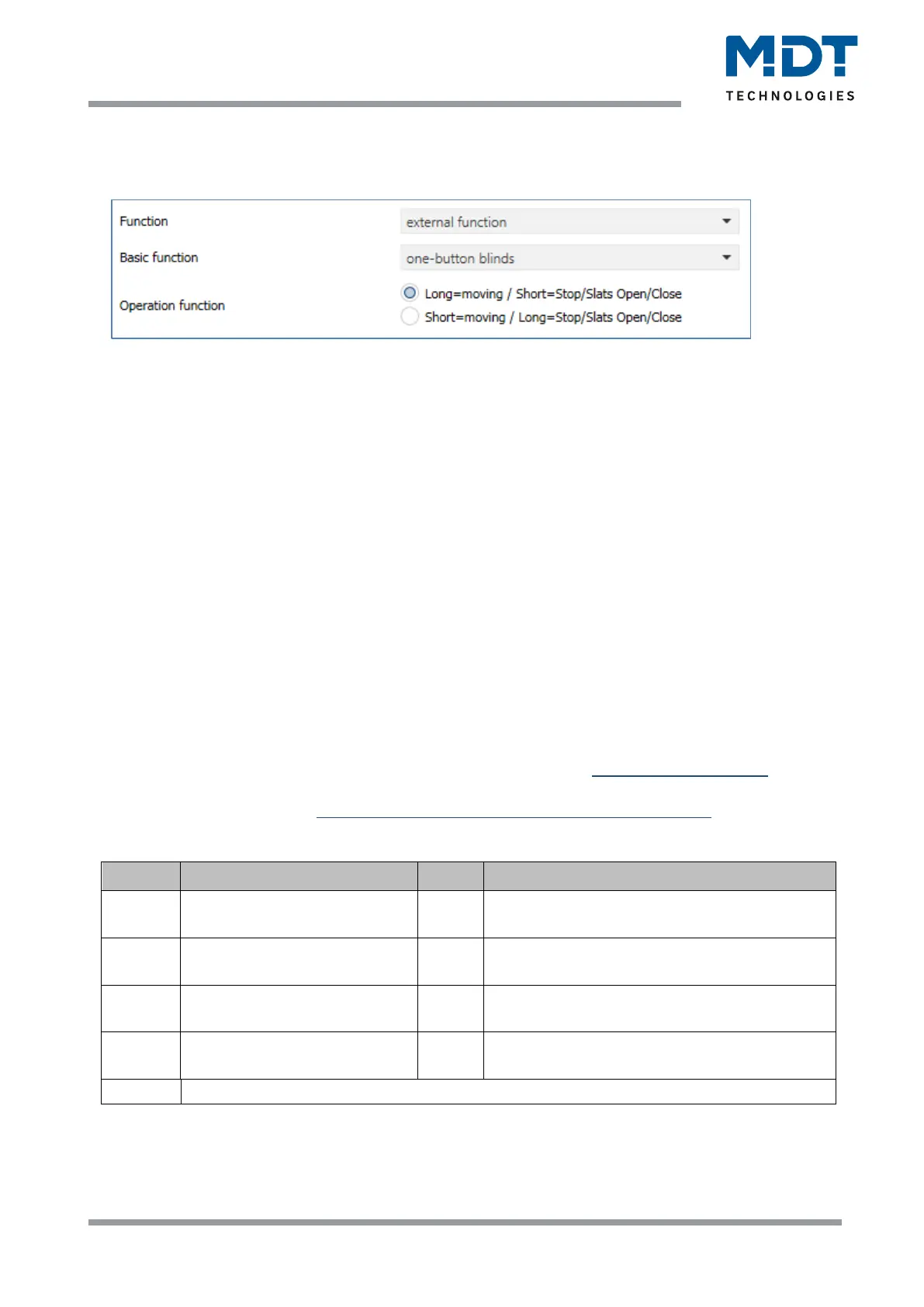 4.4.3.8 External function – Basic function: One-button blinds