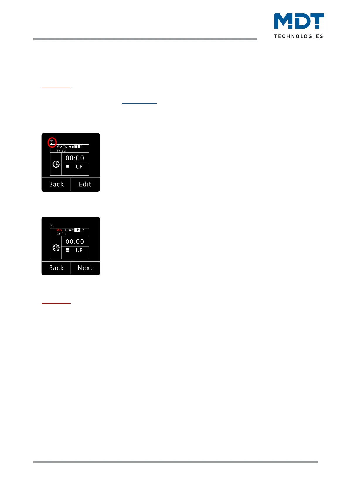 After selecting a time switch (in the example, time switch 1), pressing button 4 "Edit" takes you to