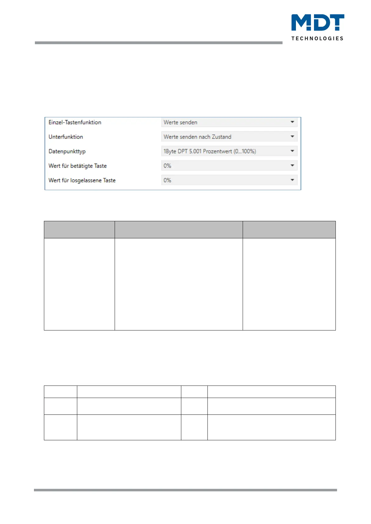 Table 33: Settings – Send values - Subfunction: Send value by state