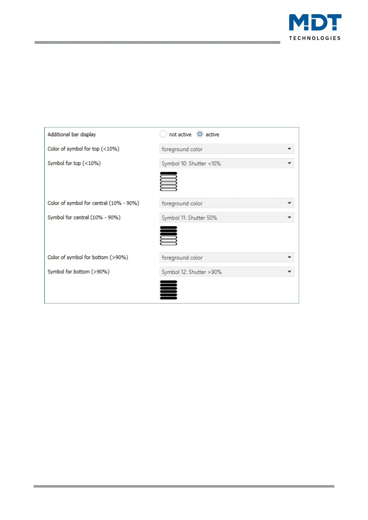 The blind/shutter function can be displayed with 3 freely selectable symbols and freely selectable