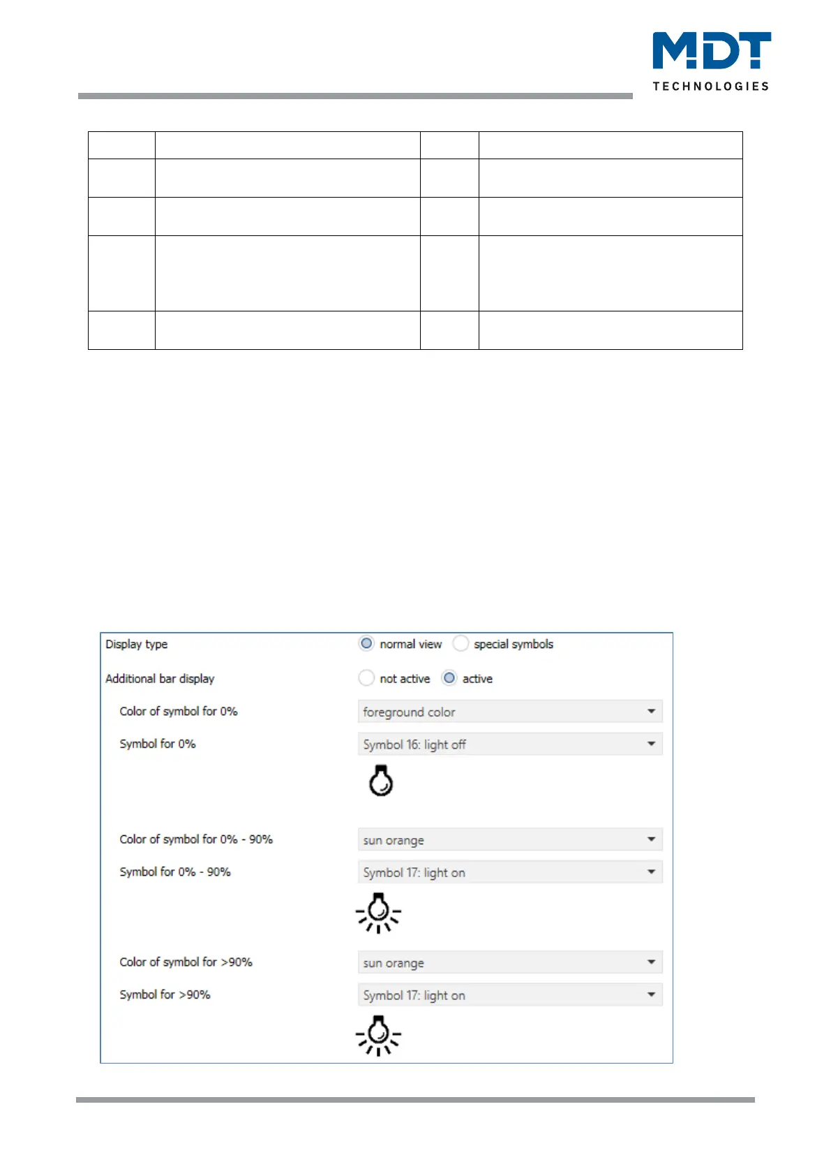 The dimming function can be displayed with 3 freely selectable symbols and freely selectable colour.