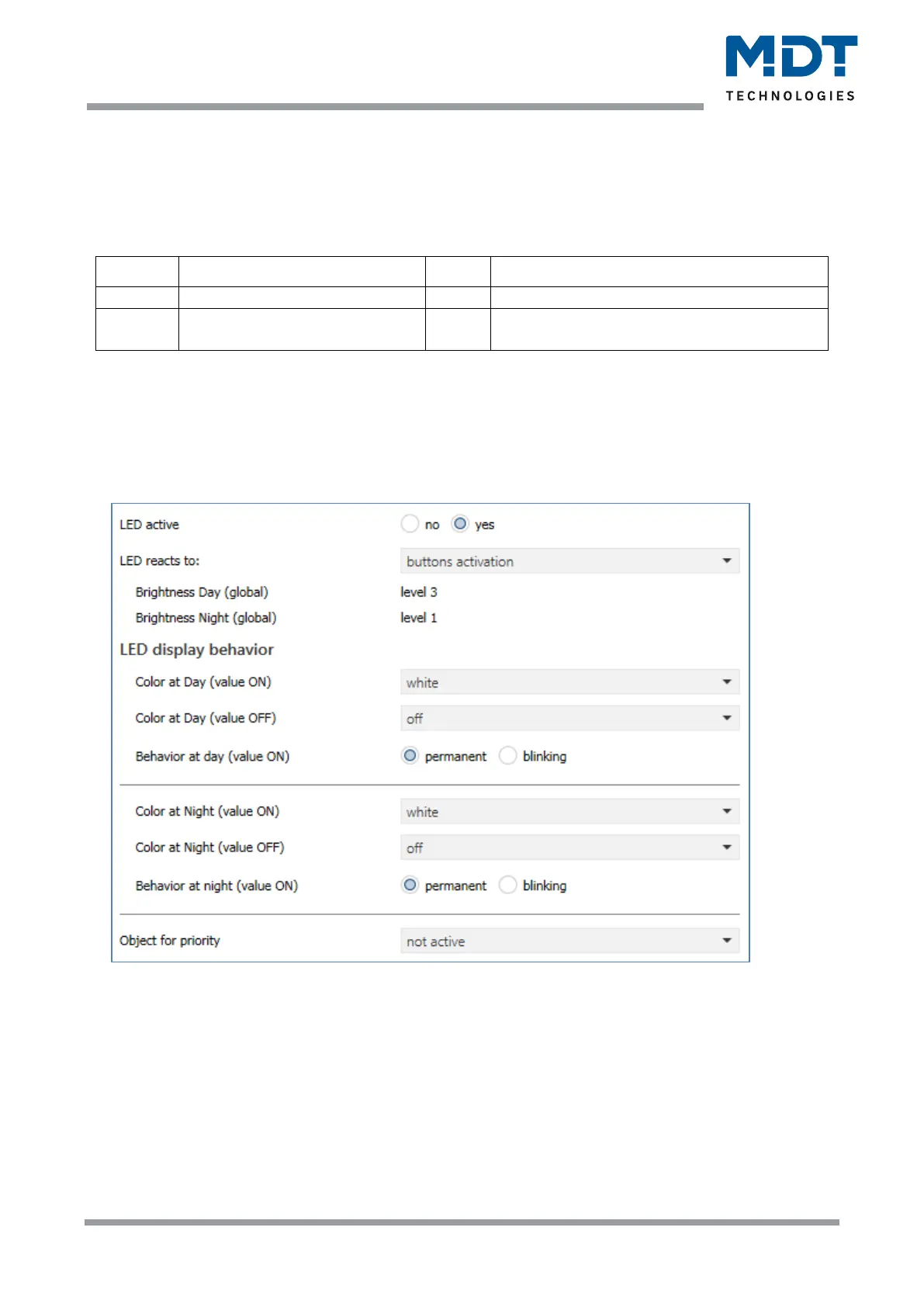 Table 68: Communication objects – LED basic settings