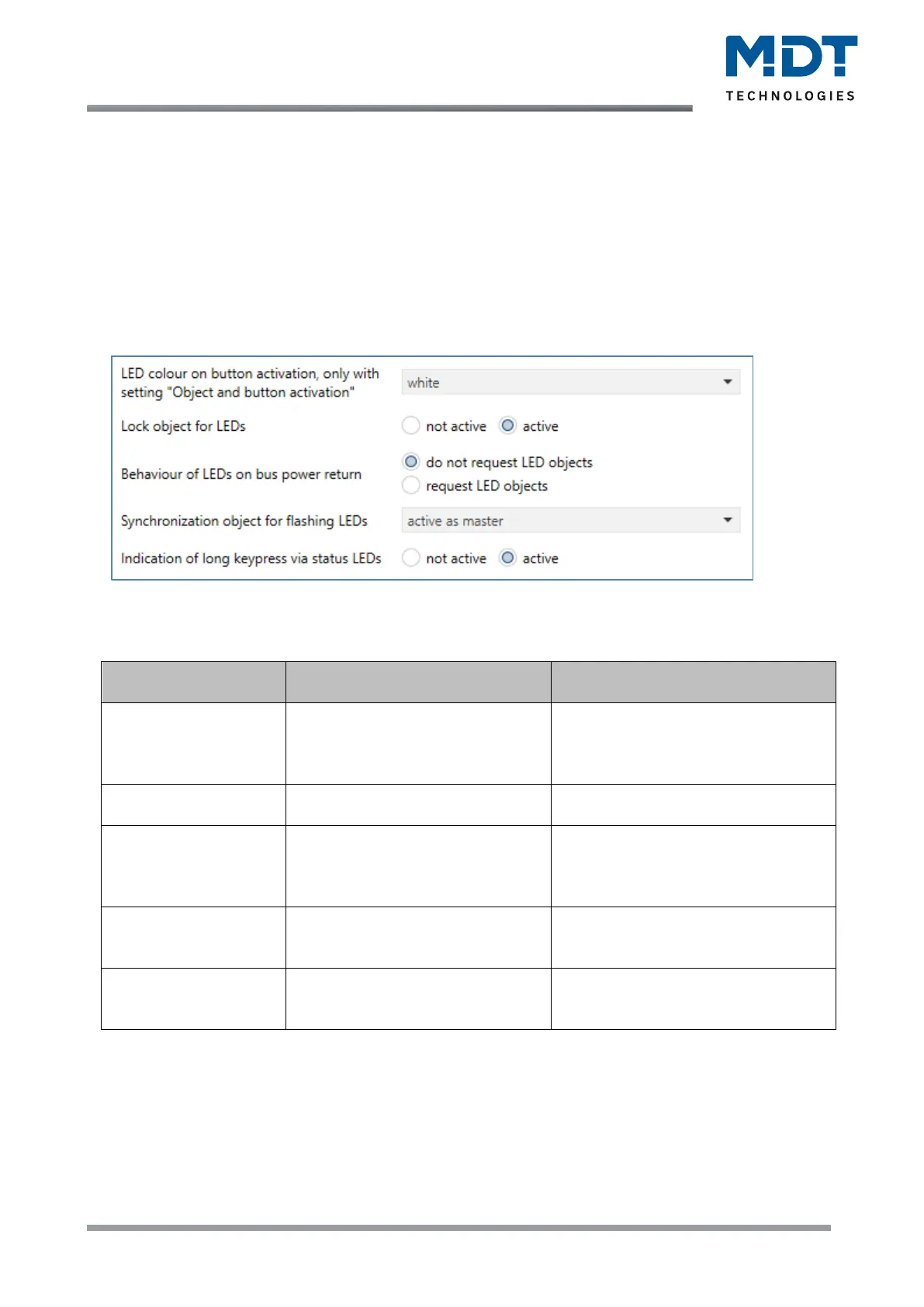 Table 68: Basic settings – LED