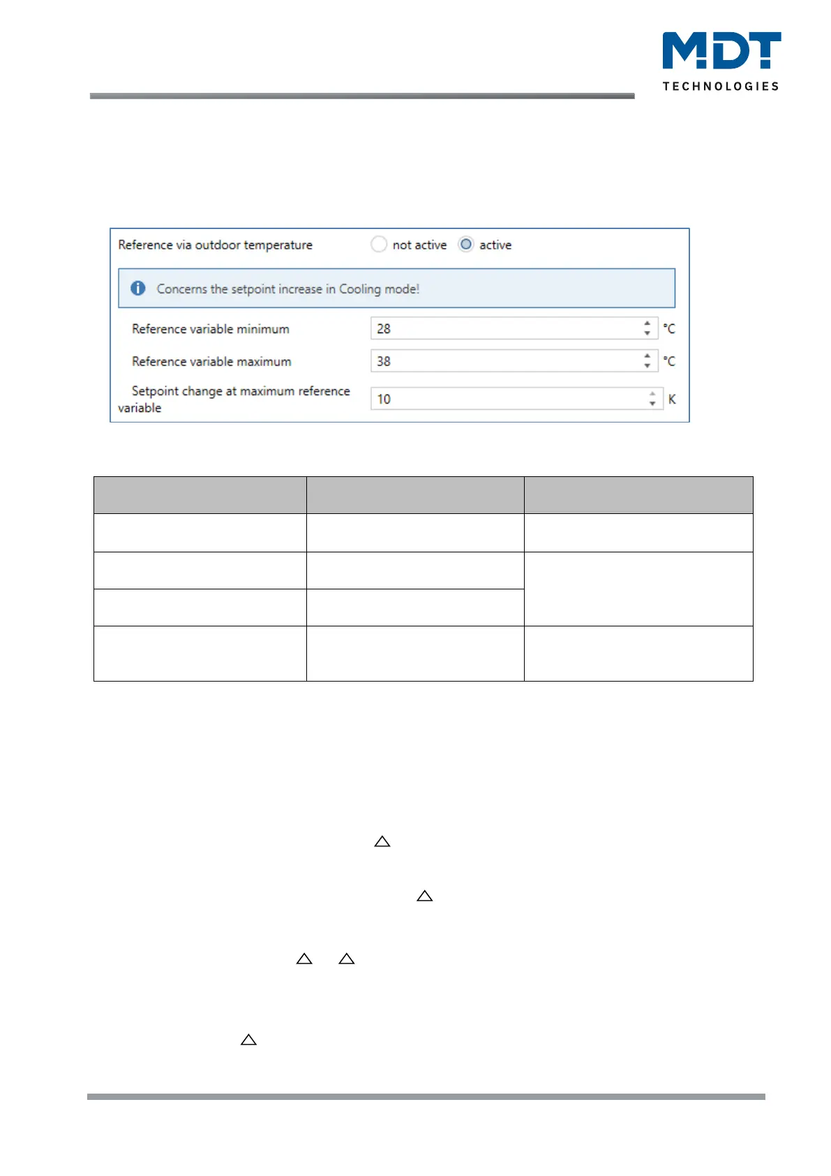 maximum reference variable" (Cooling mode). If, on the other hand, a setpoint reduction is desired,