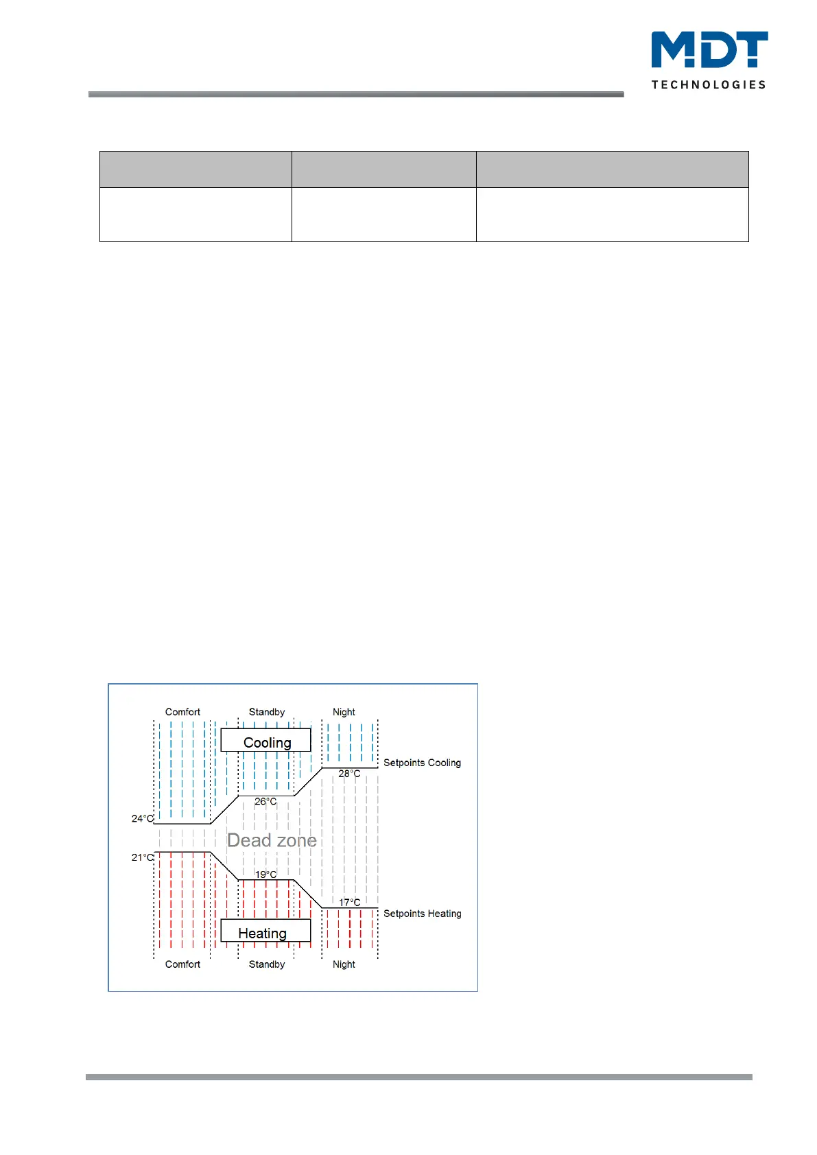 and the dead zone. So, if the base comfort value is set to 21°C and the dead zone to 3K, the