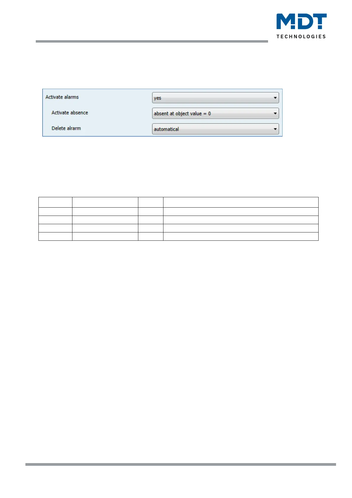 Table 12: Communication objects alarm