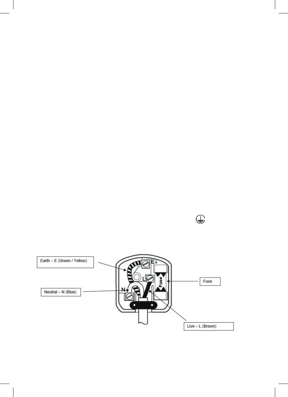 Should it be necessary to change the plug, please note the wires in the mains lead are coloured