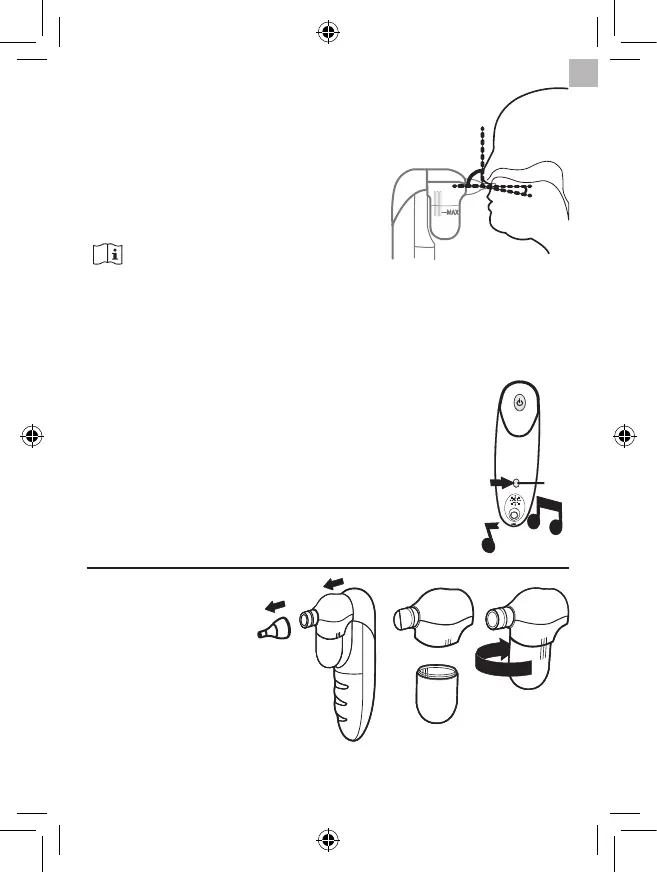de 90°. Nu-l îndreptați în nară. Permiteți