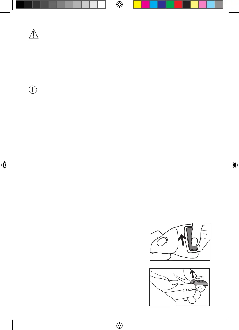 • Do not use the device on irritated skin, varicose veins, rashes, spots, (hairy)