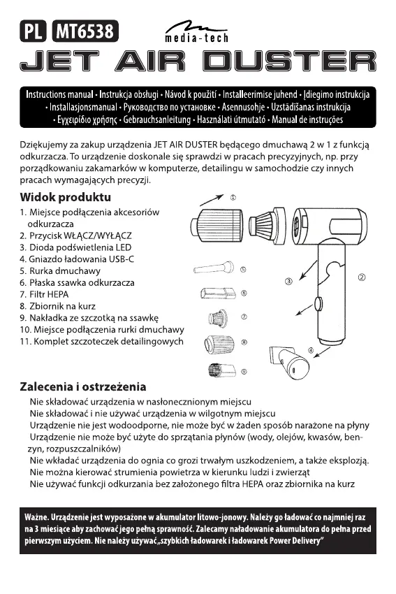 Bekijk gratis de handleiding van Media-tech Jet Air Duster MT6538, stel vragen en lees de antwoorden op veelvoorkomende problemen, of gebruik onze assistent om sneller informatie in de handleiding te vinden of uitleg te krijgen over specifieke functies.