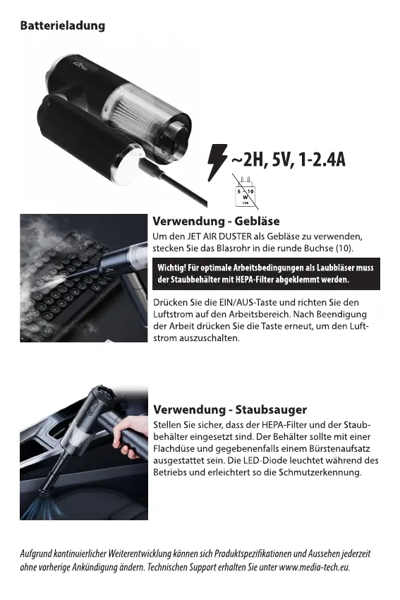 Bekijk gratis de handleiding van Media-tech Jet Air Duster MT6538, stel vragen en lees de antwoorden op veelvoorkomende problemen, of gebruik onze assistent om sneller informatie in de handleiding te vinden of uitleg te krijgen over specifieke functies.