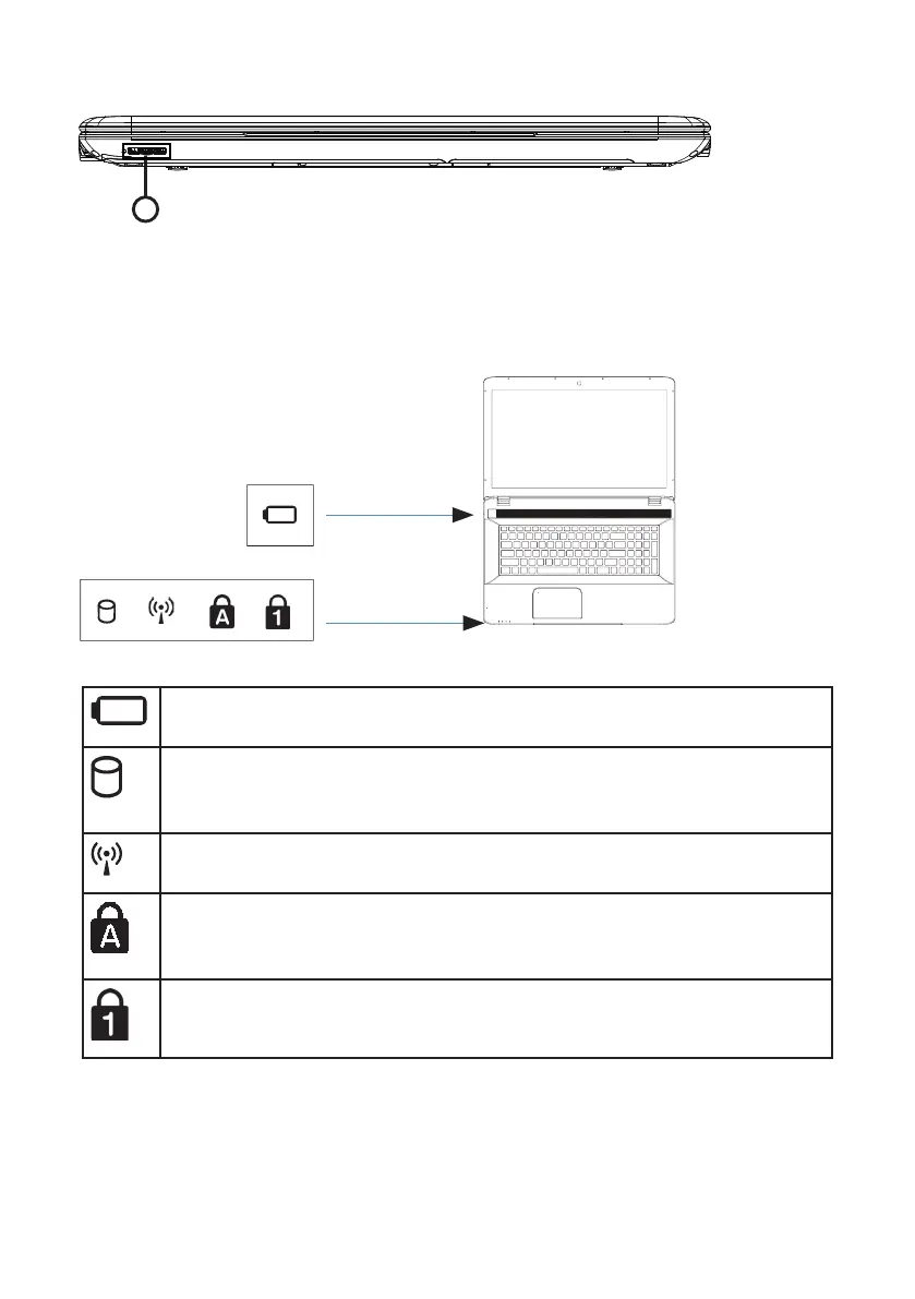 This LED lights or flashes when the Notebook is accessing the hard disk