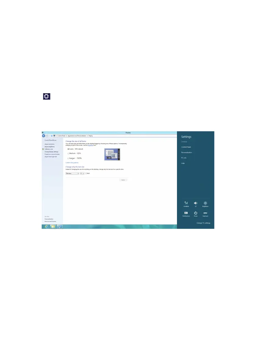 • Via Settings, Personalisation, Display by double clicking with the left mouse