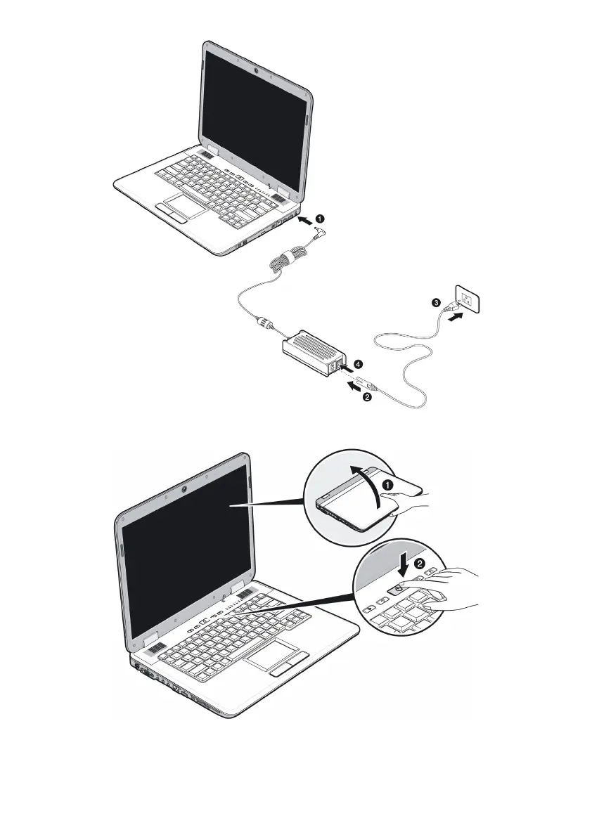 • Switch the notebook on by operating the On/Off Switch (2). The notebook
