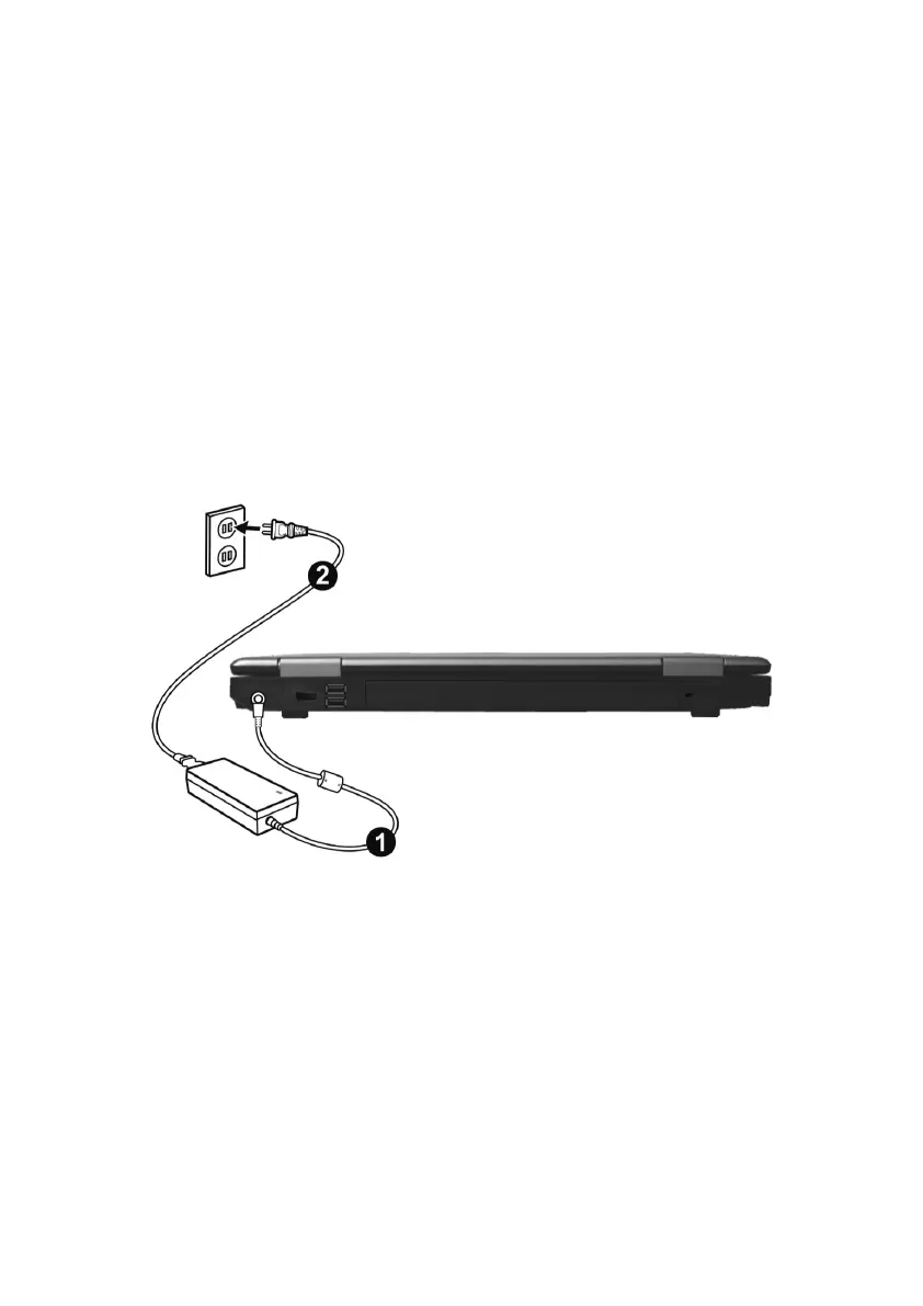 • Connect the supplied power adapter to the notebook at the notebook power socket