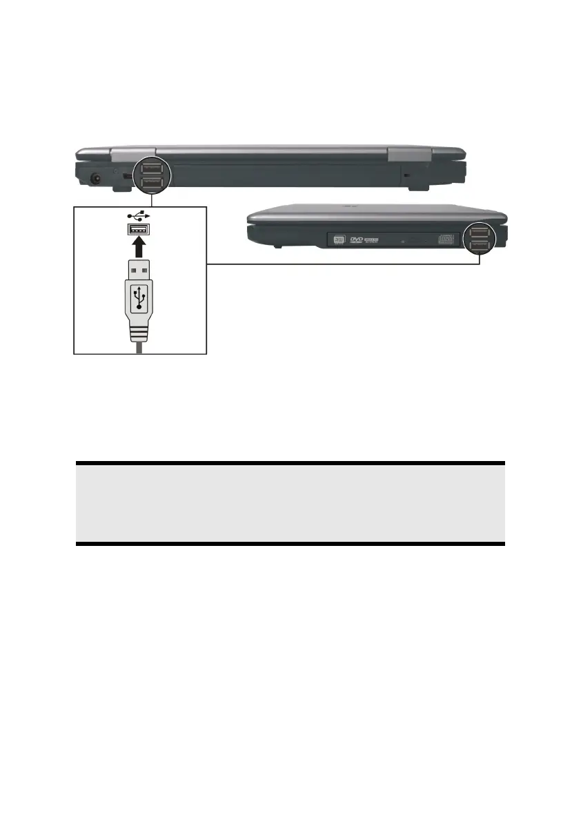 USB ports provide an easy way to connect many peripheral devices to your Notebook (20).