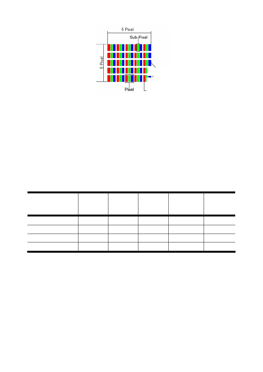 pixel). A cluster is an array of 5 x 5 pixel (15 x 5 sub-pixel).