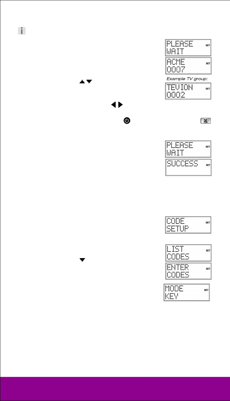 9. Use the arrows to select a device code for this brand name.