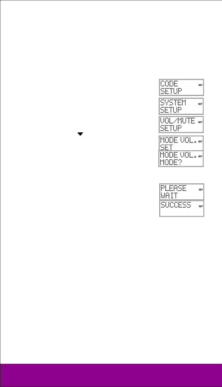 5. Use the arrows to select the MODE VOL. SET menu. Use