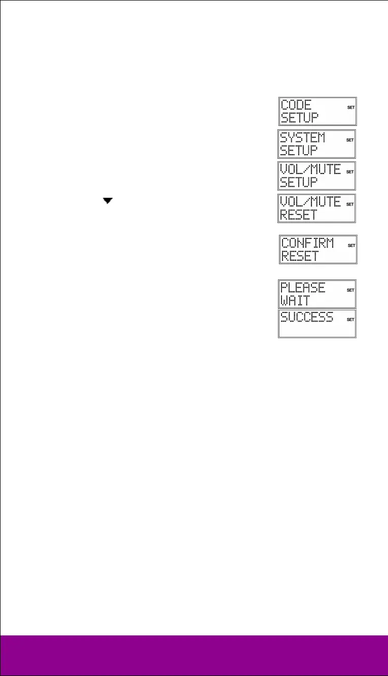 5. Use the arrows (press twice) to select the VOL/MUTE