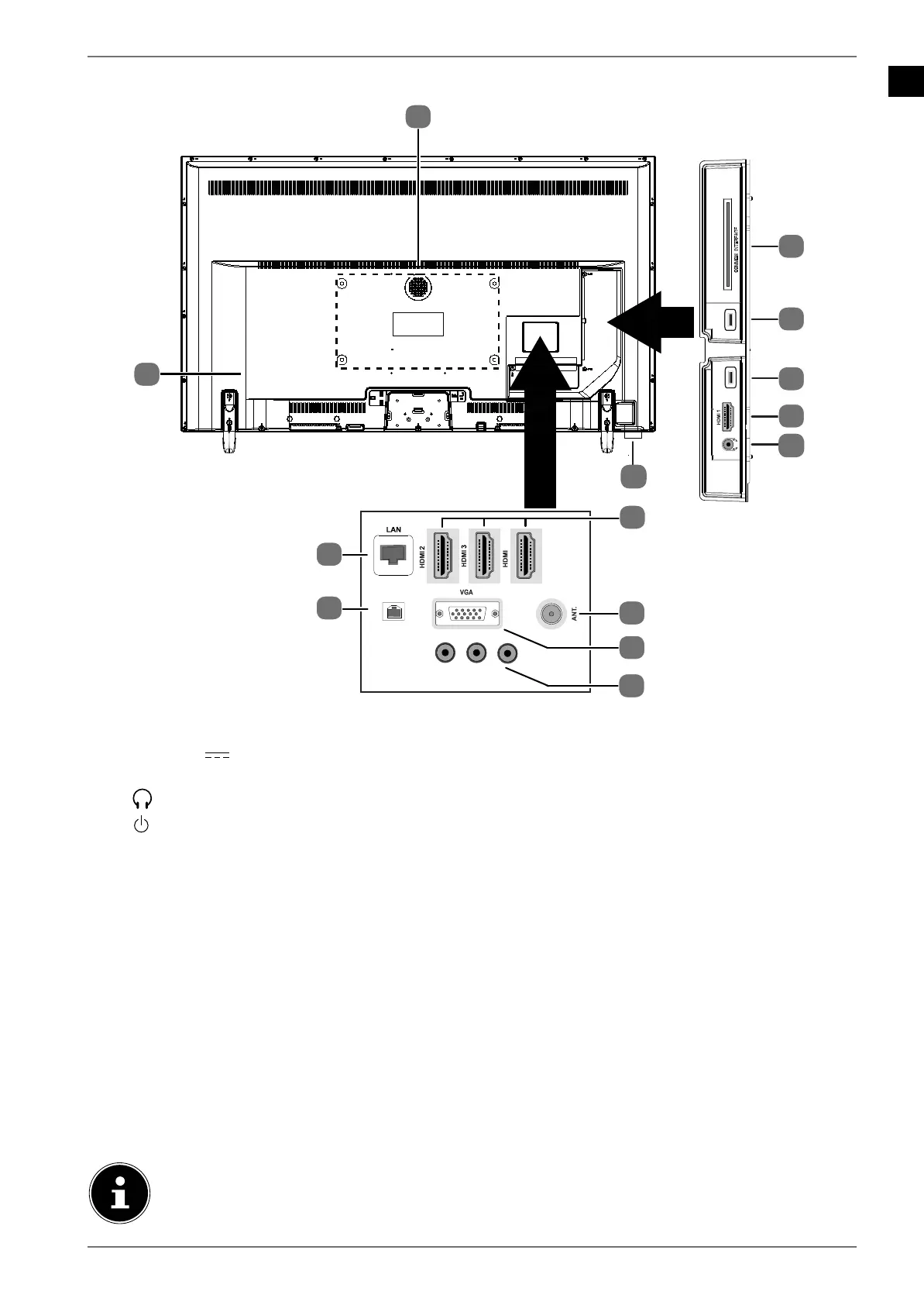 , 500 mA max.): USB connection for media playback/recording (PVR)