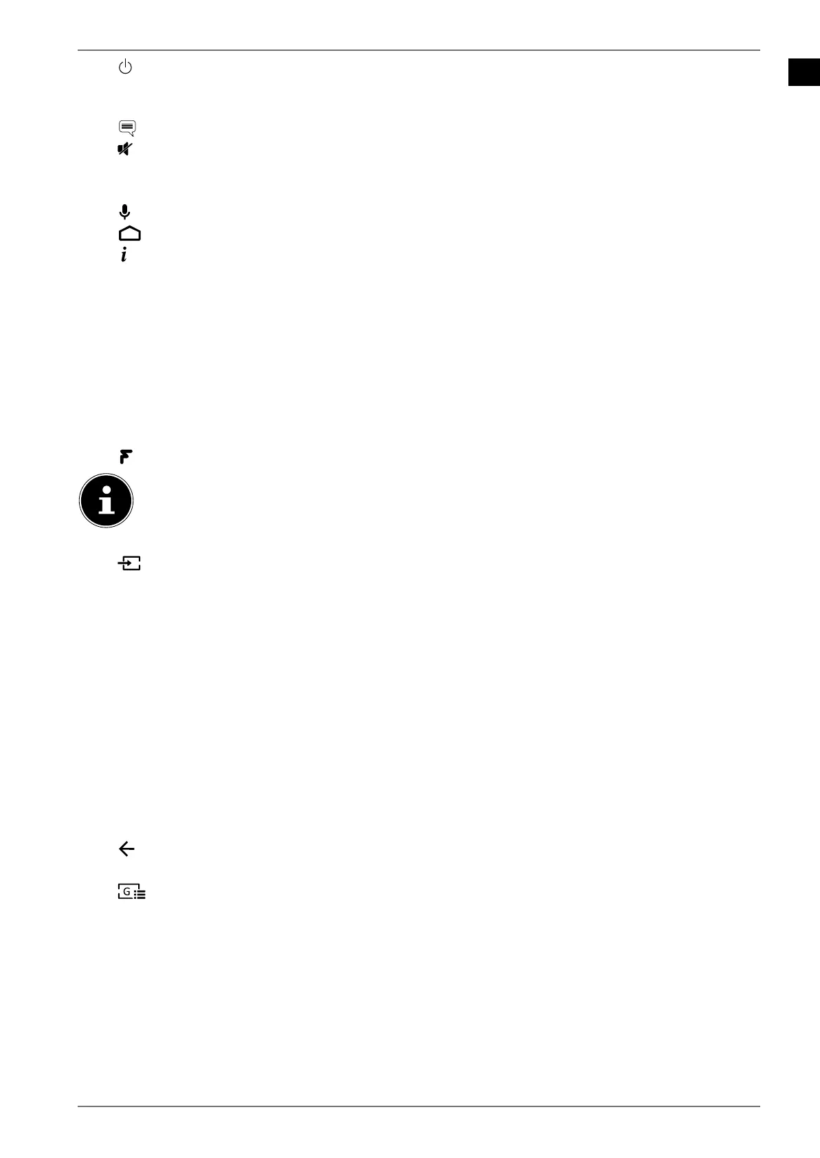 1) : Switch smart TV on/off (switch standby mode on/off)