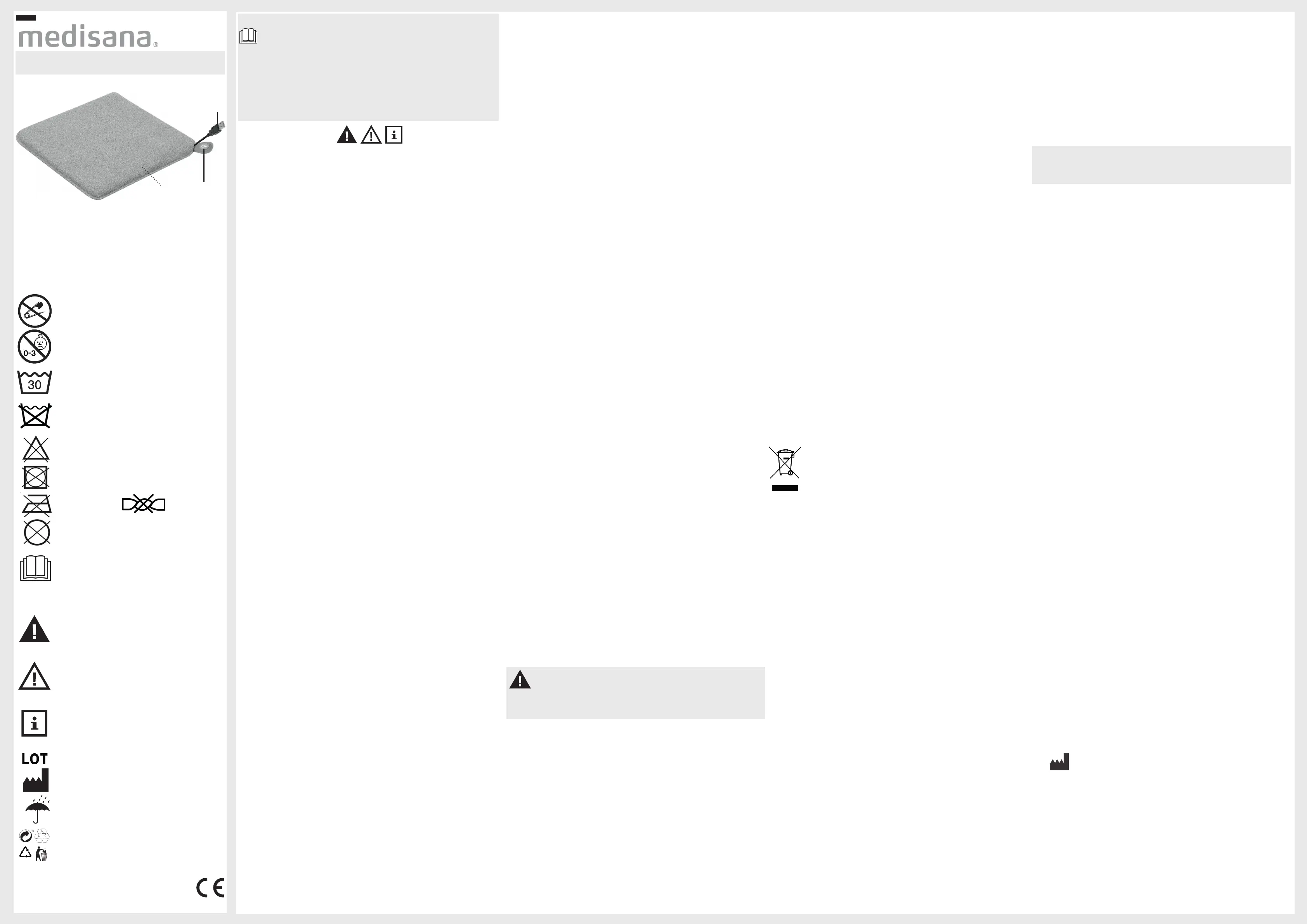• 1 ηλεκτρική θερμοφόρα μαξιλάρι καθίσματος medisana OL 600