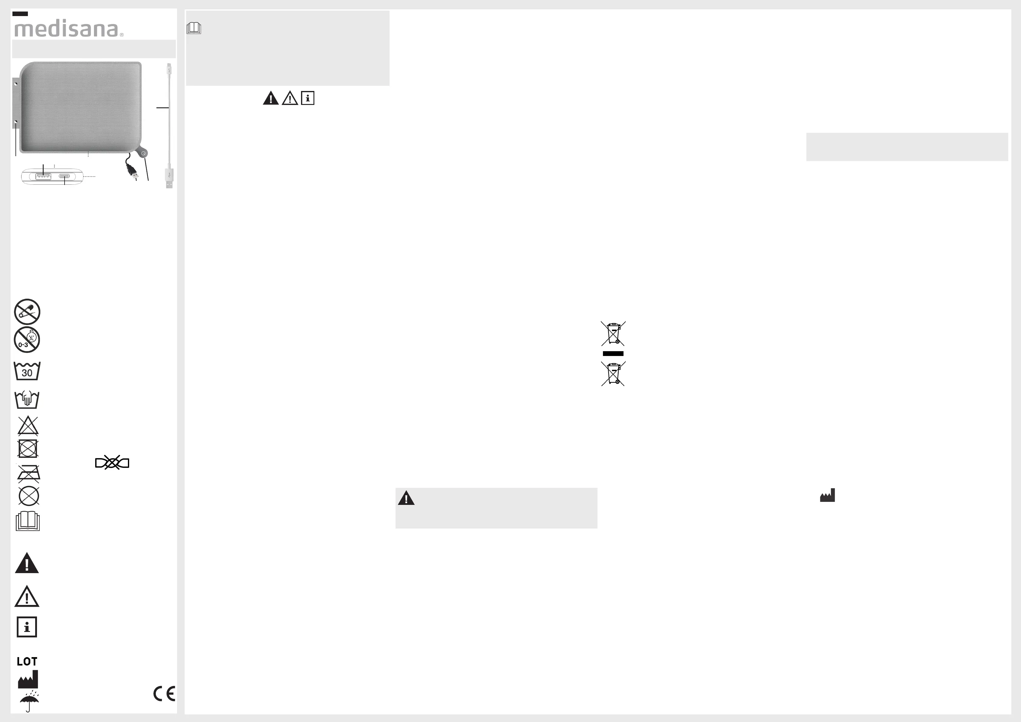 • Värmedynan får inte användas när den är vikt eller böjd.