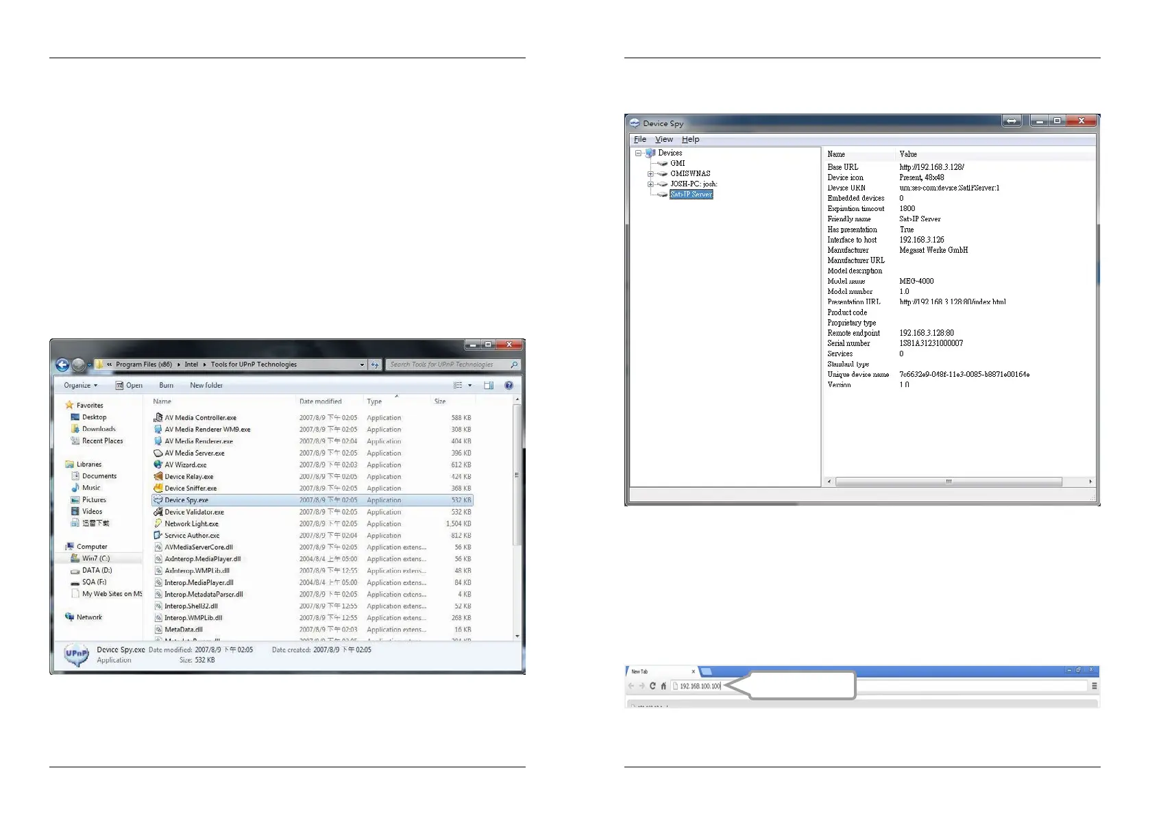 Users allows the IP address to identify a free UPnP tool (eg Intel Developer Tools for UPnP