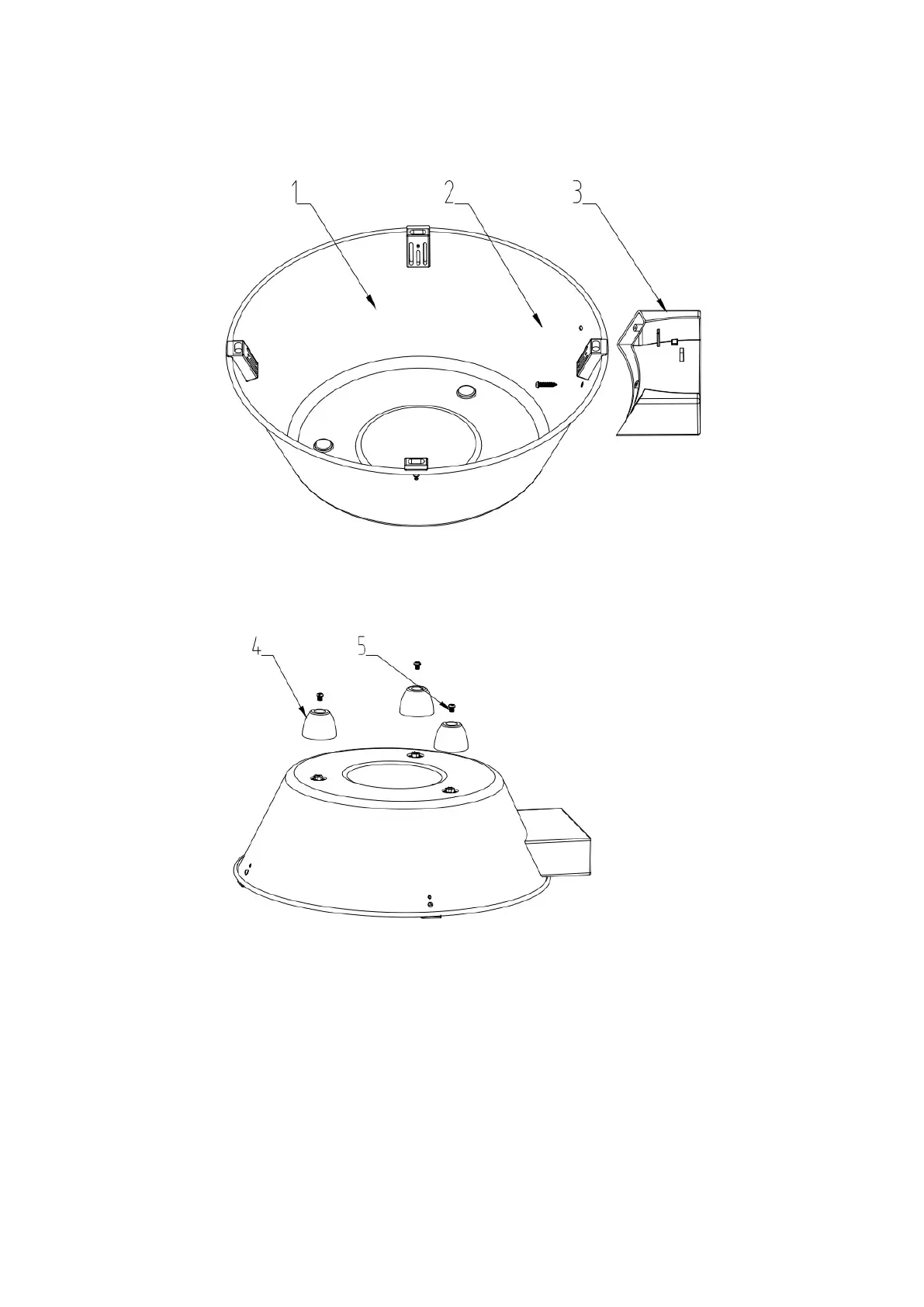 1) Corps central 2) Vis (3 pièces) 3) Base avec interrupteur