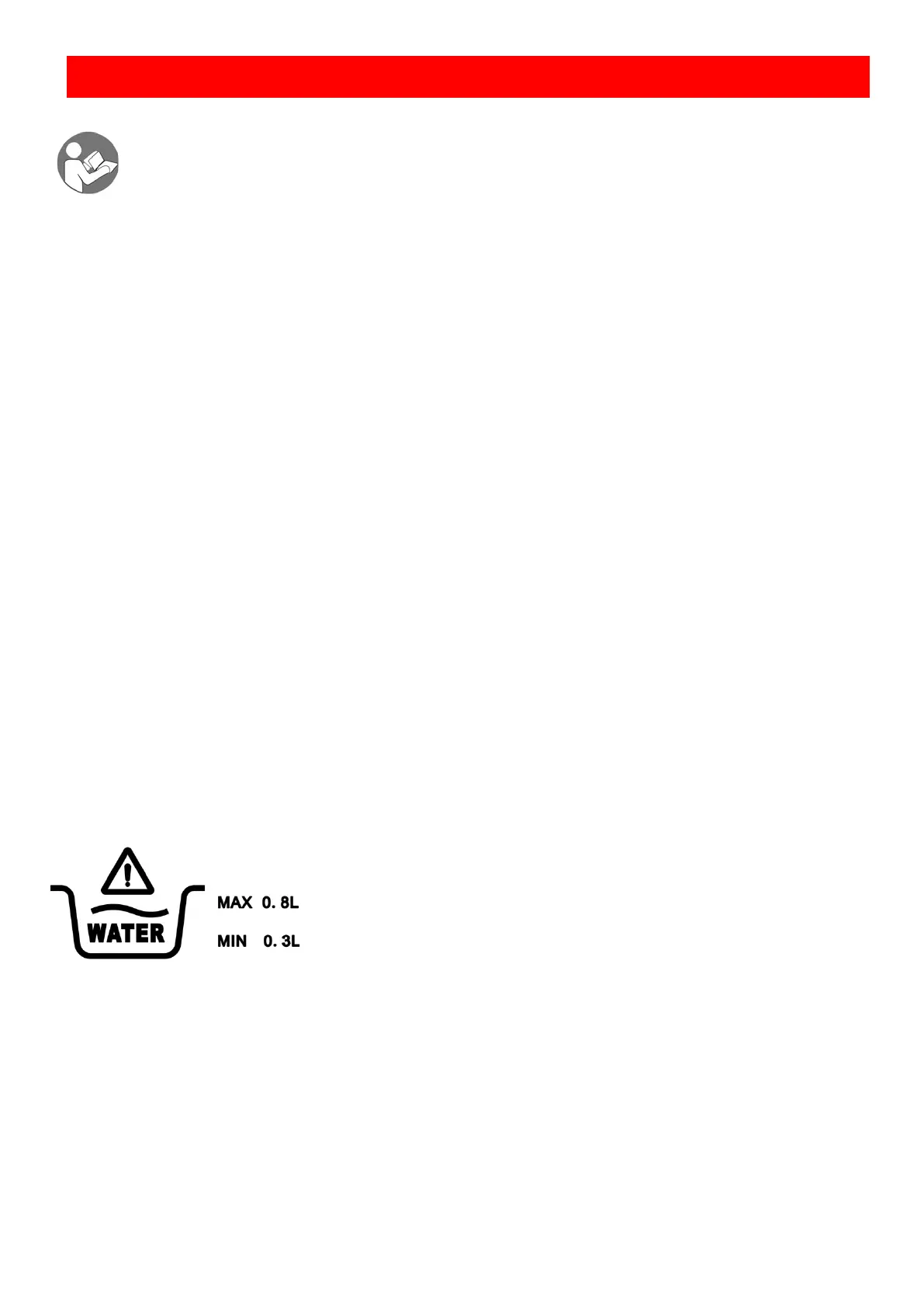 8) Überprüfen Sie immer, ob sich Wasser über dem Mindestwert von 0,3 l befindet. Fügen Sie es