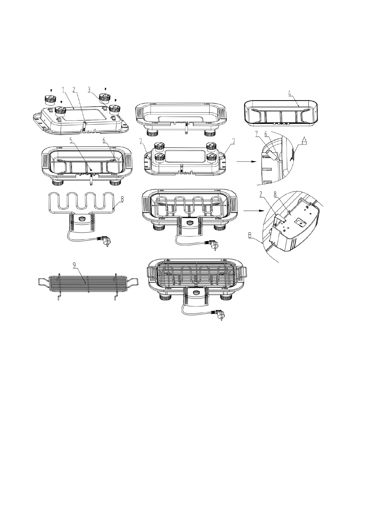 fix the zinc on the body. Ensure that the grill is placed in a safe and stable position. The power cord should be