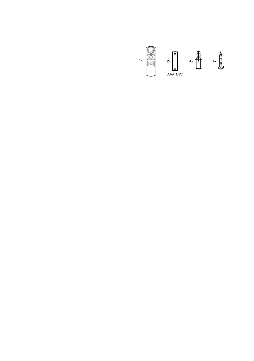 télécommande, quatre chevilles et quatre vis
