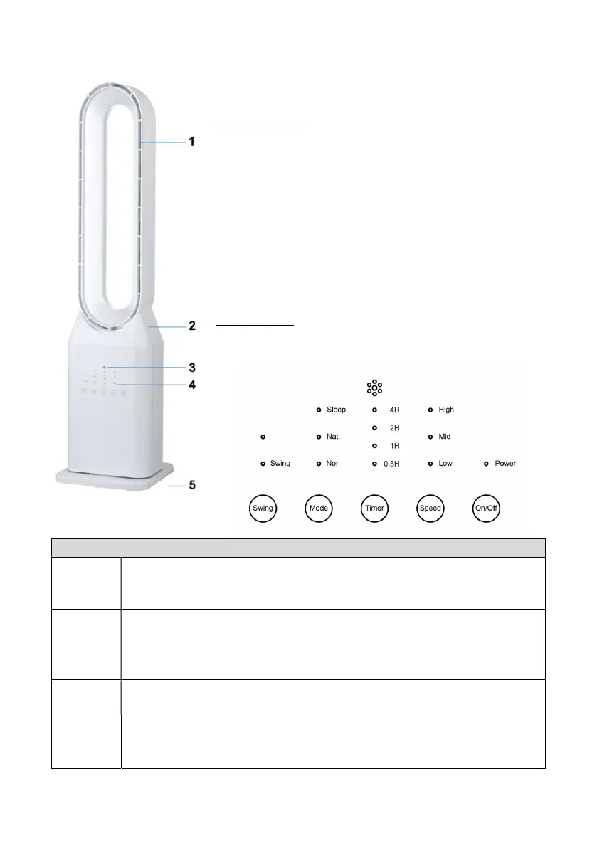 Speed Each time the button is pressed again, it changes the air outlet speed