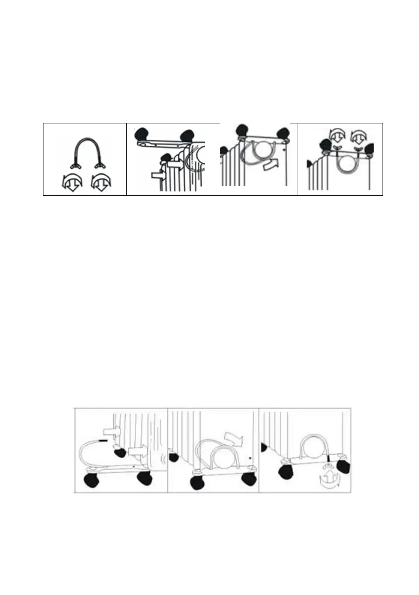 3. Para fijar la placa de montaje de las ruedas al cuerpo del radiador, inserte los
